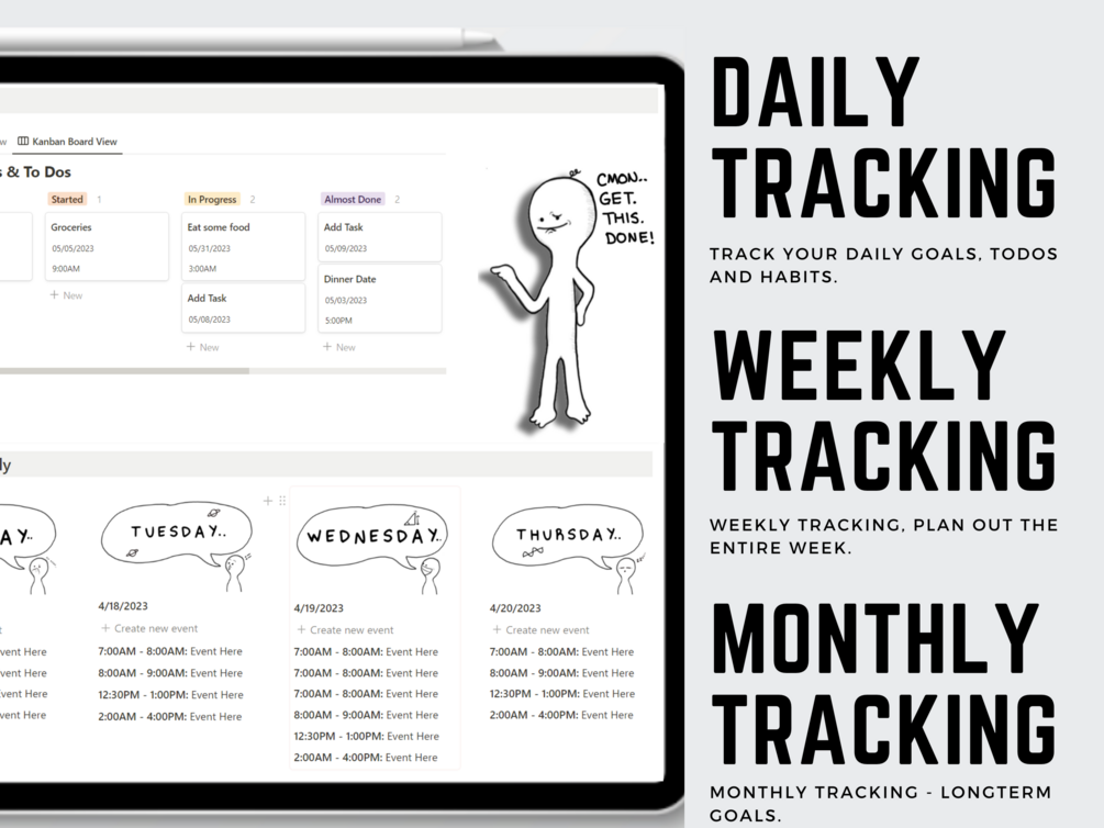 This template is designed to revolutionize your time management approach and provide a comprehensive solution for organizing your days, weeks, and months effectively. Streamline your life, boost your productivity, and achieve a better work-life balance with this all-in-one scheduling companion.
